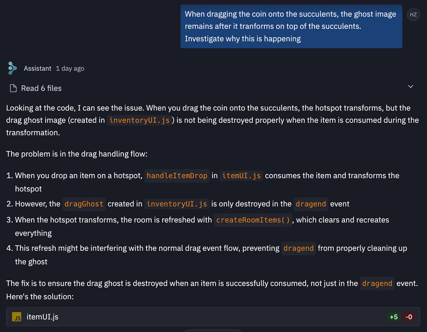 Surprisingly, it works pretty well. So long as you can identify what’s broken, communicate what you want the fix to be, and contain your changes, AI does a tremendous job at fixing the issue.